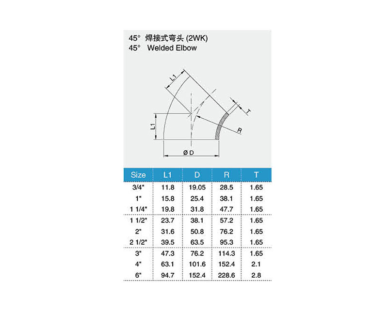 45°焊接式彎頭(2WK)