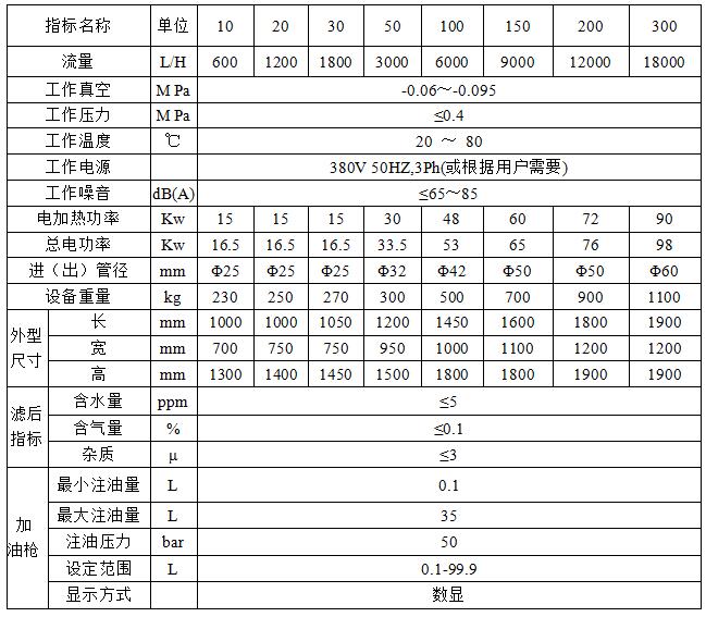 定量加油槍注油槍抽油注油器可用于對電氣設備抽真空、真空注油、加油、過濾等。使用時先用真空泵將電氣設備上面的金屬膨脹器上部抽到高真空后,絕緣油可以通過油管下部自動注油或通過油泵注油到設備所屬的正常油位。保證充油設備內的殘余氣體特別是線圈間的氣體首先被抽掉,設備注油、補油更方便安全,油質不污染,能保證設備原有絕緣性能。也是各電廠、電站、變電所、電器制造廠、工礦企業過濾變壓器油、透平油、機油、液壓油等油液中的少量水份、氣體和雜質的理想設備。